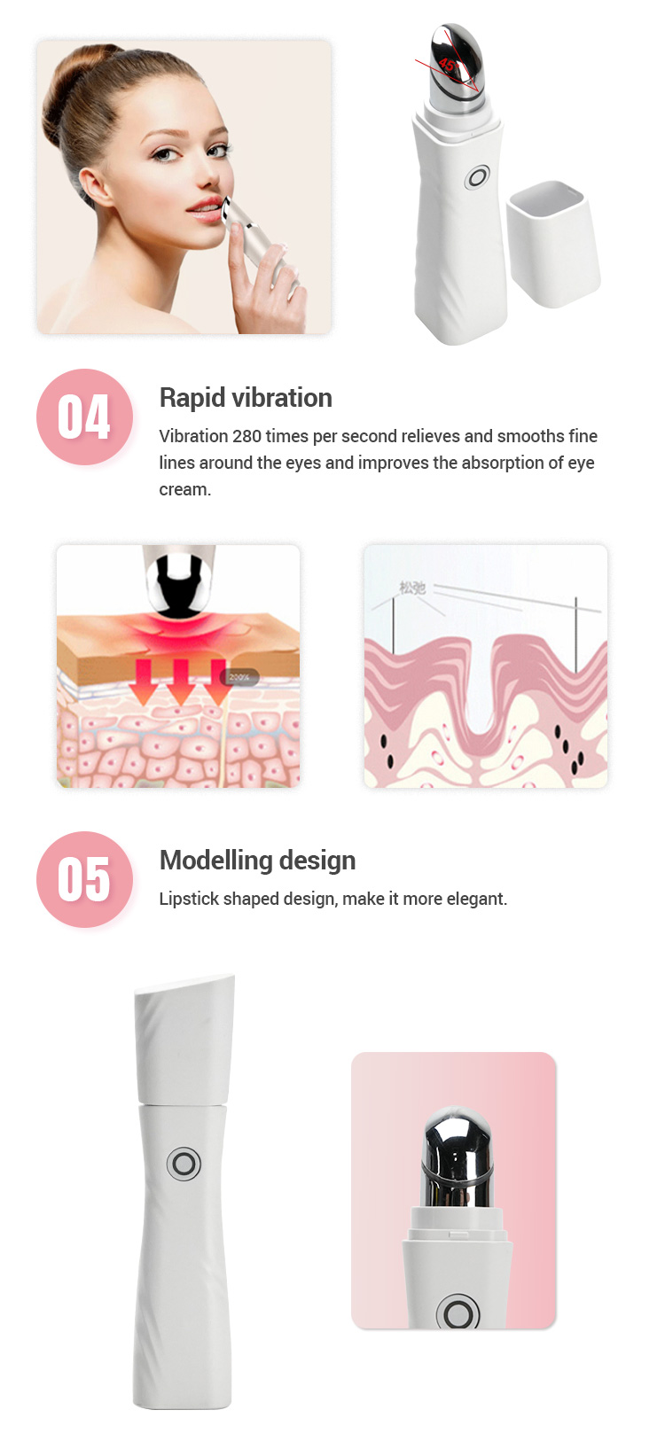 اهتزاز 280 مرة في الثانية يمكن أن تخفف وتنعيم الخطوط الدقيقة حول العينين ، وتحسين امتصاص كريم العين .